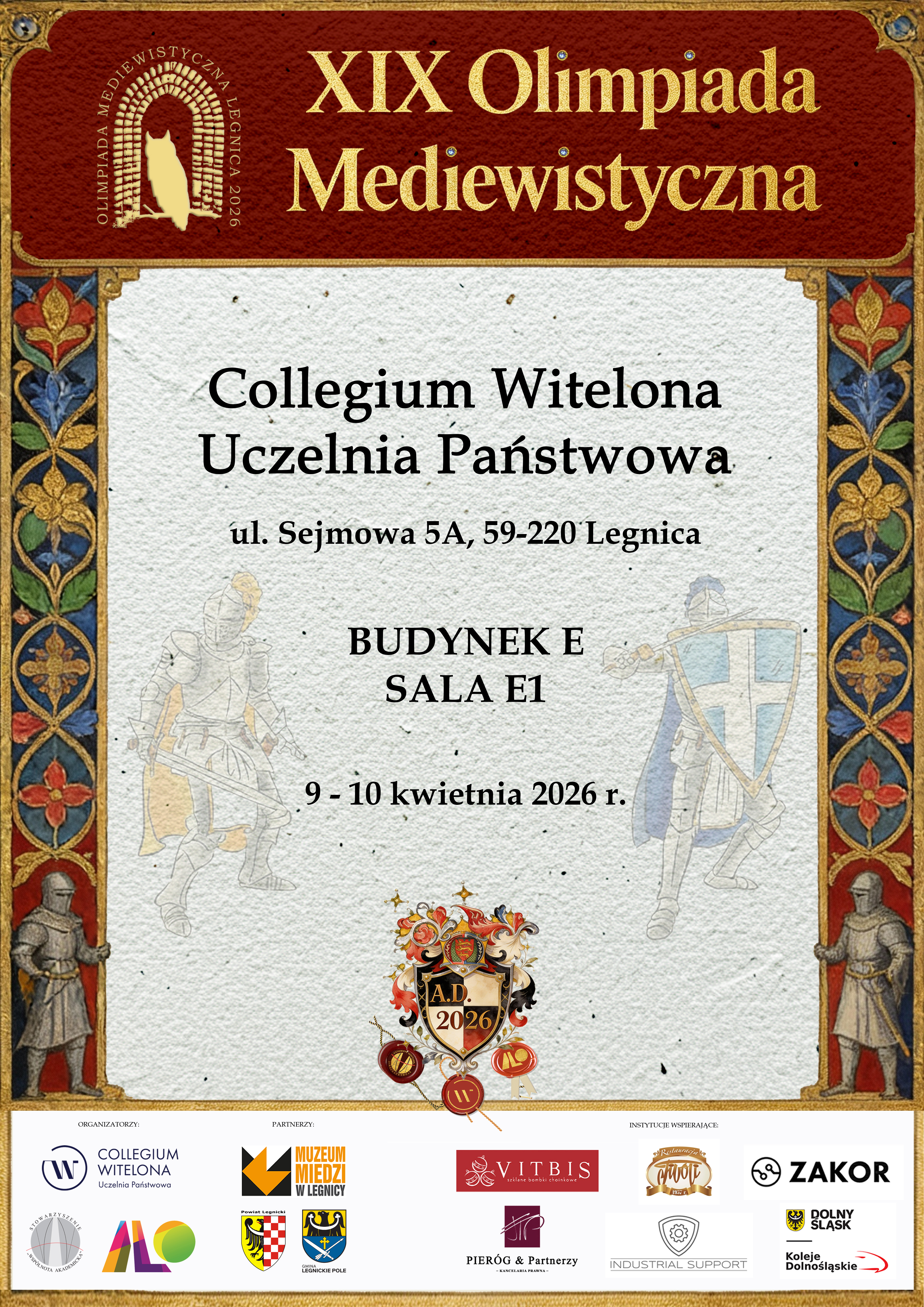 Jesteś tutaj:  Home  >  wiedza  >  Finał XIX Olimpiady Mediewistycznej już wkrótce w Collegium Witelona  >  Plakat – XIX Olimpiada Mediewistyczna (1)